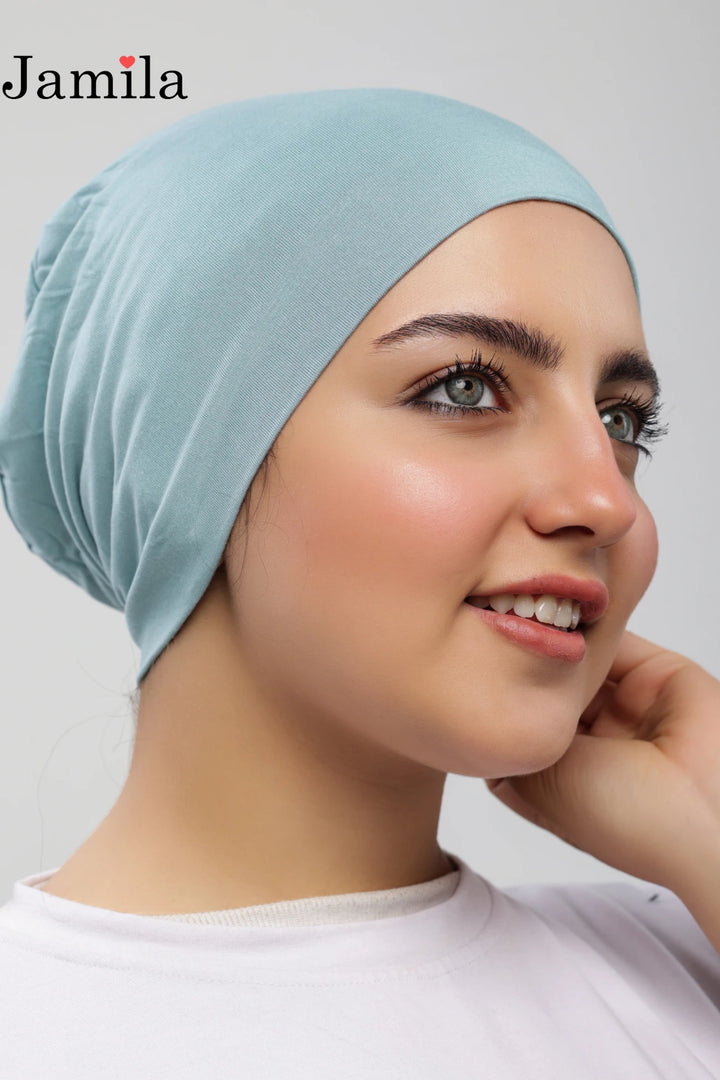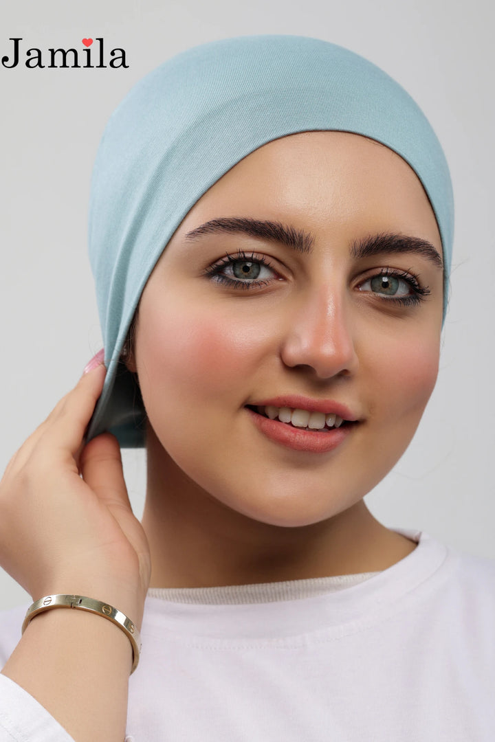 A seamless, closed headband that fully covers the head and allows you to adjust the front. It comes in a variety of colors and is made of soft Lycra fabric. It helps you wear all types of scarves, especially chiffon, as it can be adjusted at the front. It absorbs sweat and keeps your hair dry.