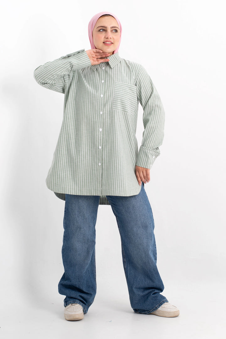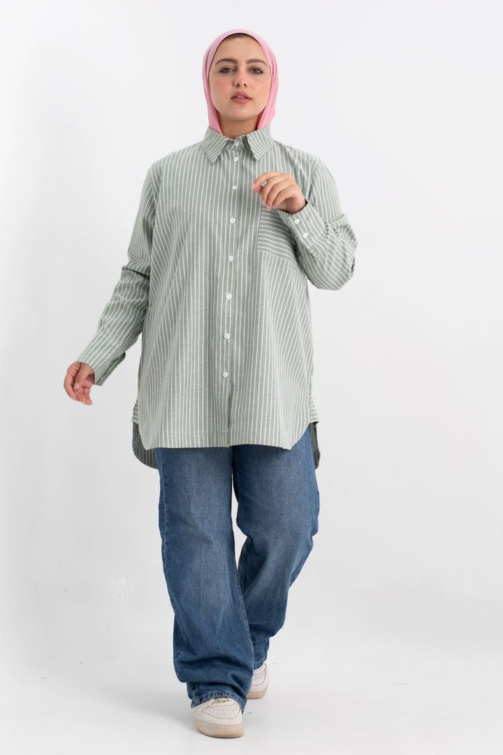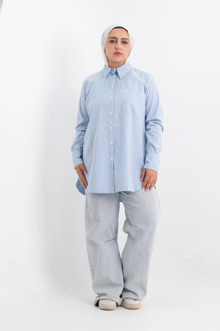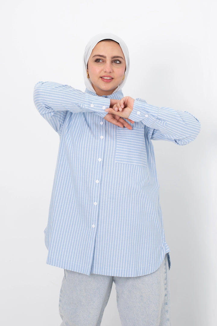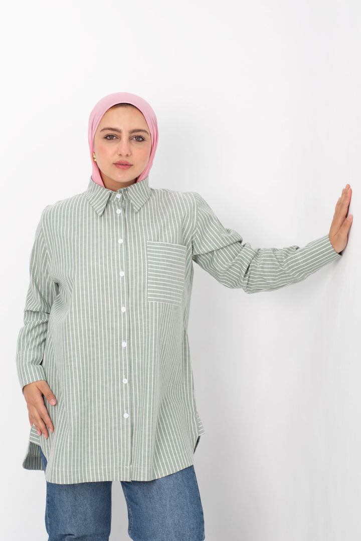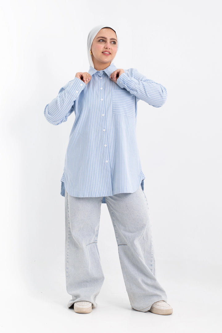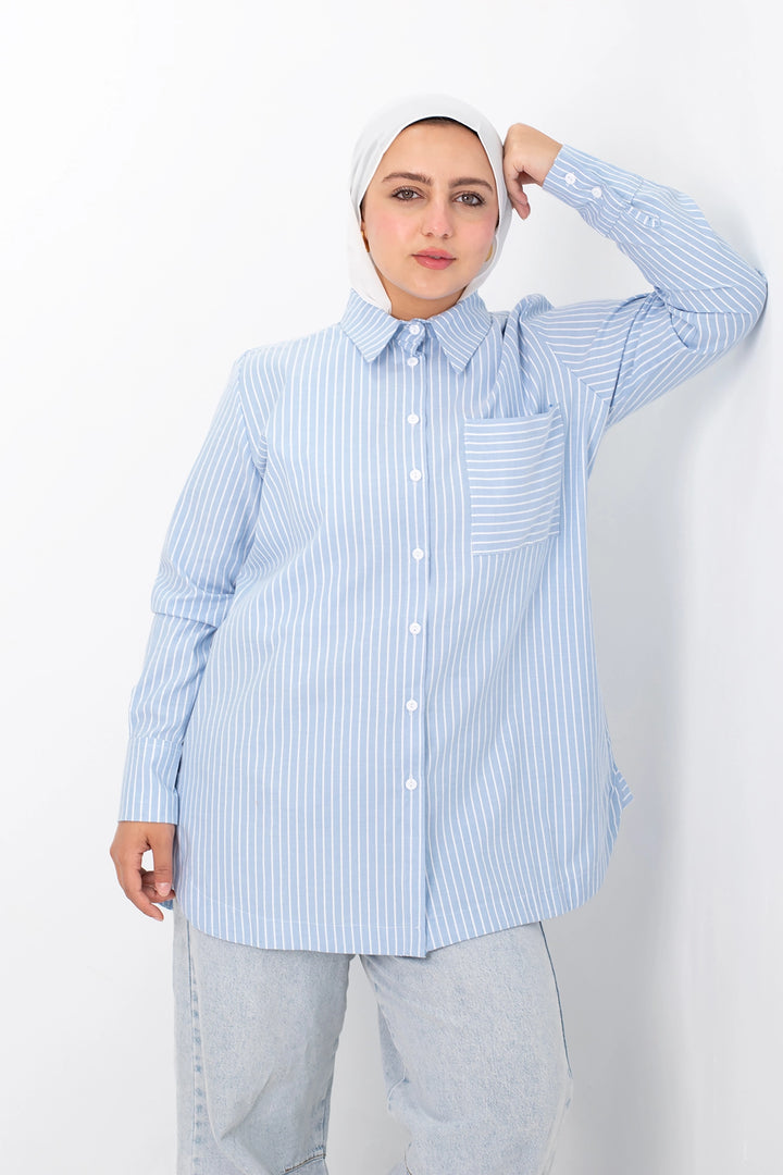 A shirt with front buttons and a side pocket, and the sleeve with wide cuffs adds a neat and elegant look.