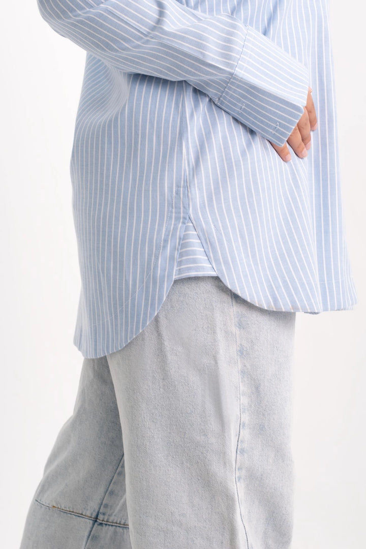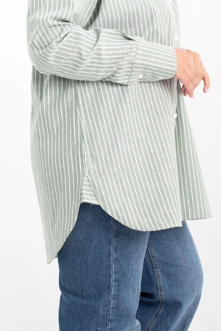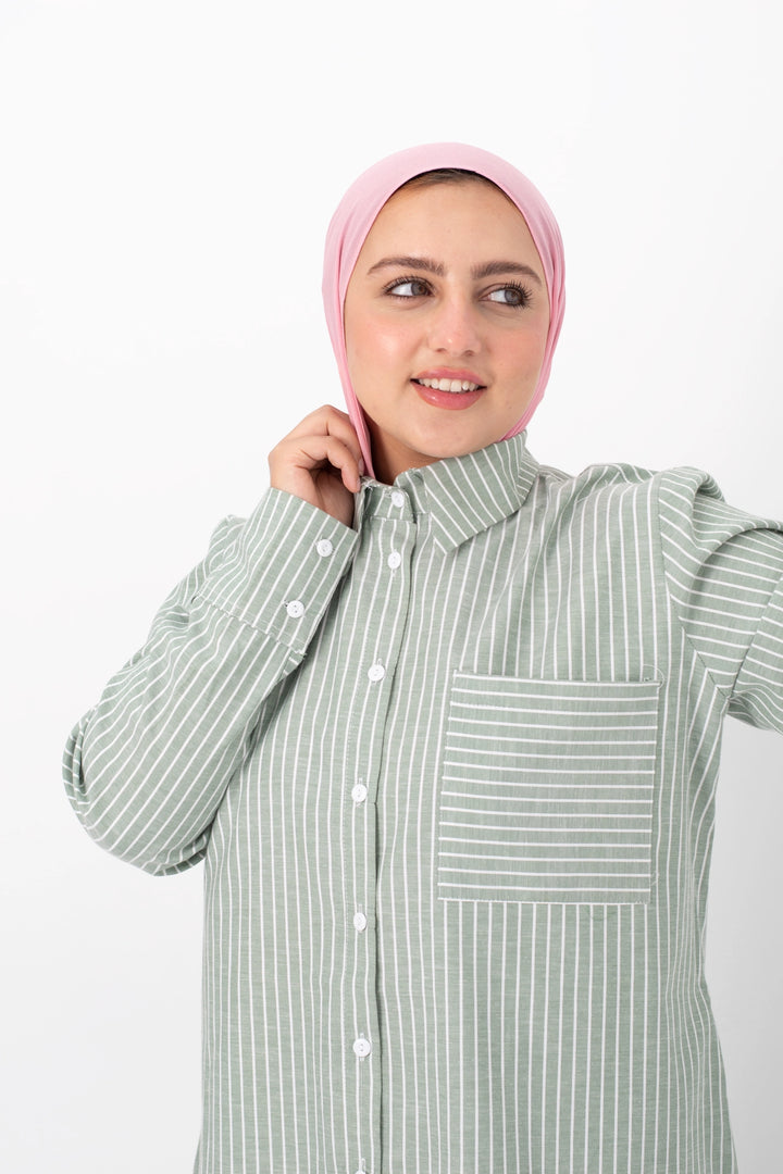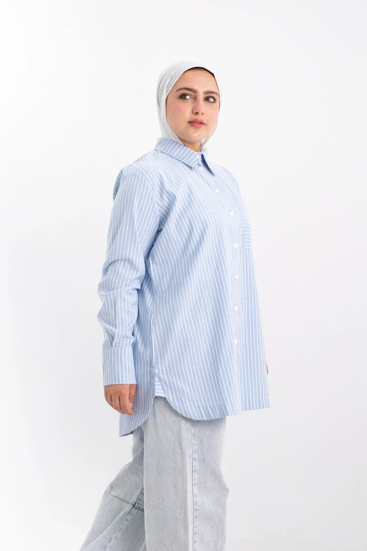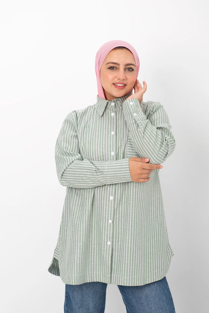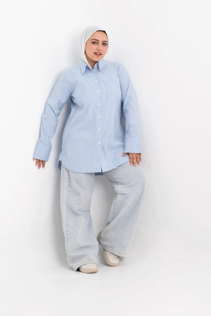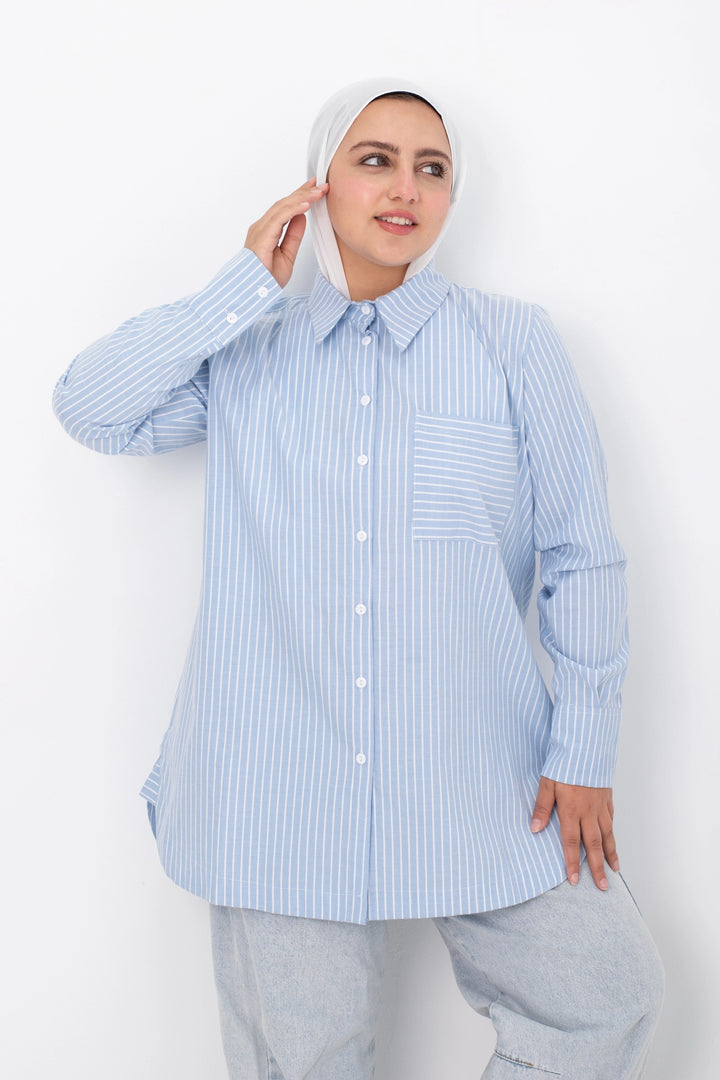 A shirt with front buttons and a side pocket, and the sleeve with wide cuffs adds a neat and elegant look.