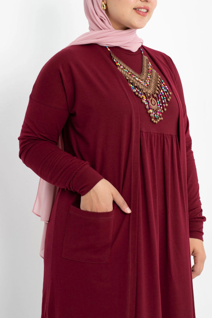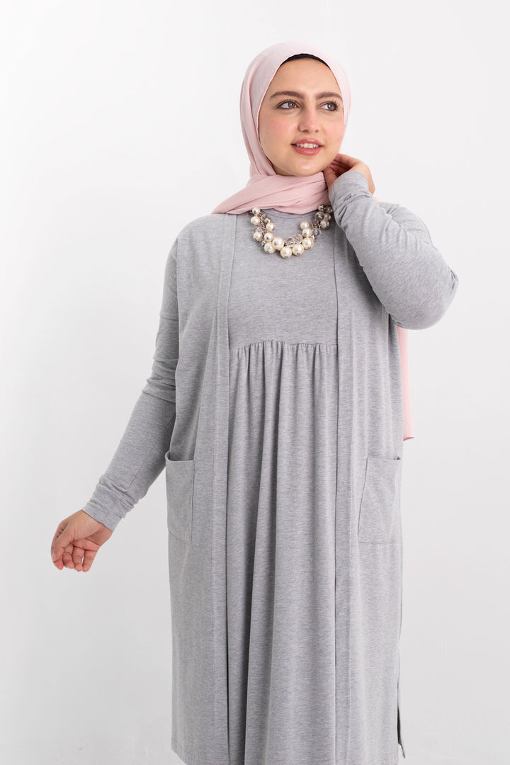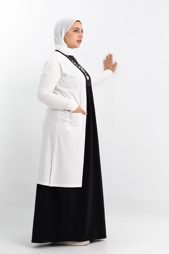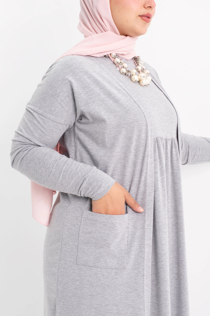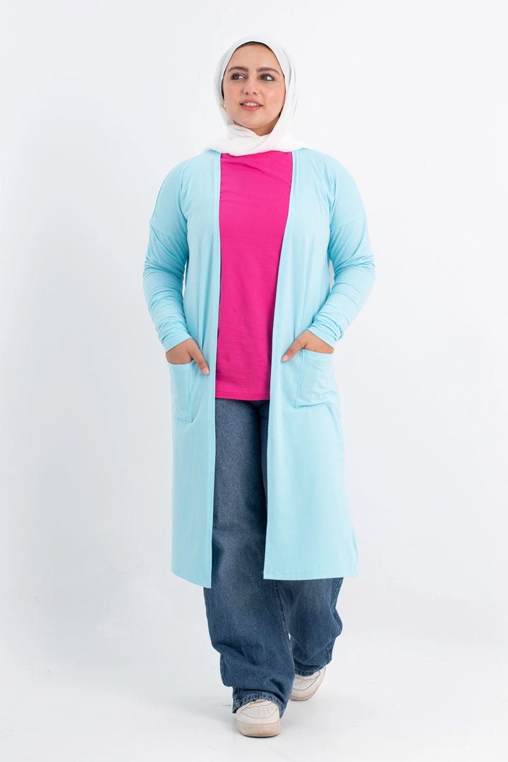 Its practical design, with long sleeves, cuffs, side slits, and front pockets, makes it ideal for any everyday outing.