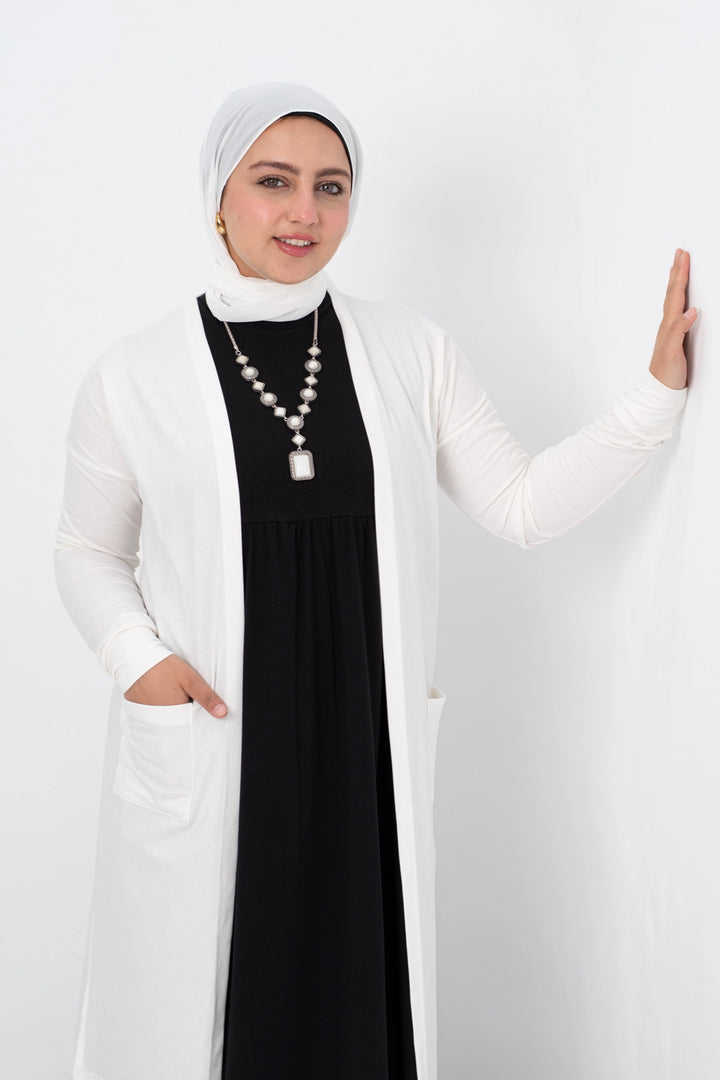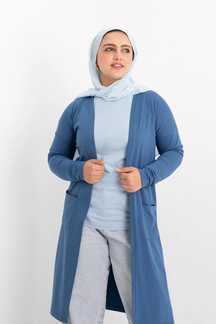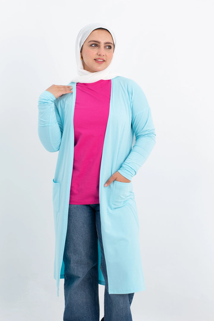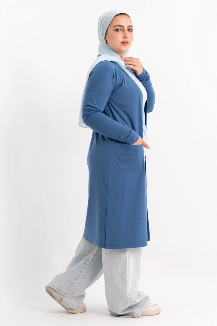 Long cotton cardigan in a comfortable fabric with a light Lycra percentage.