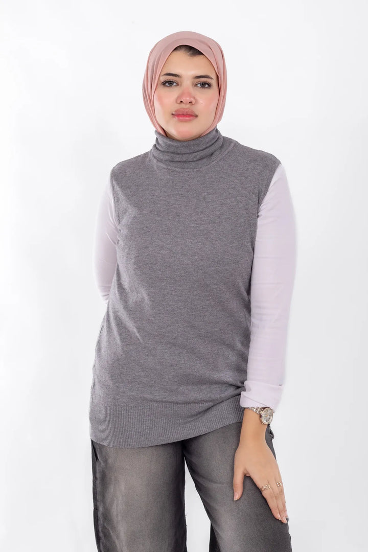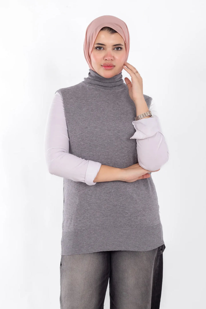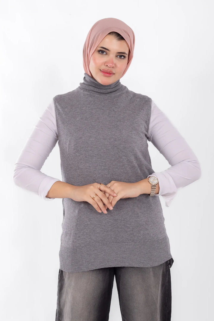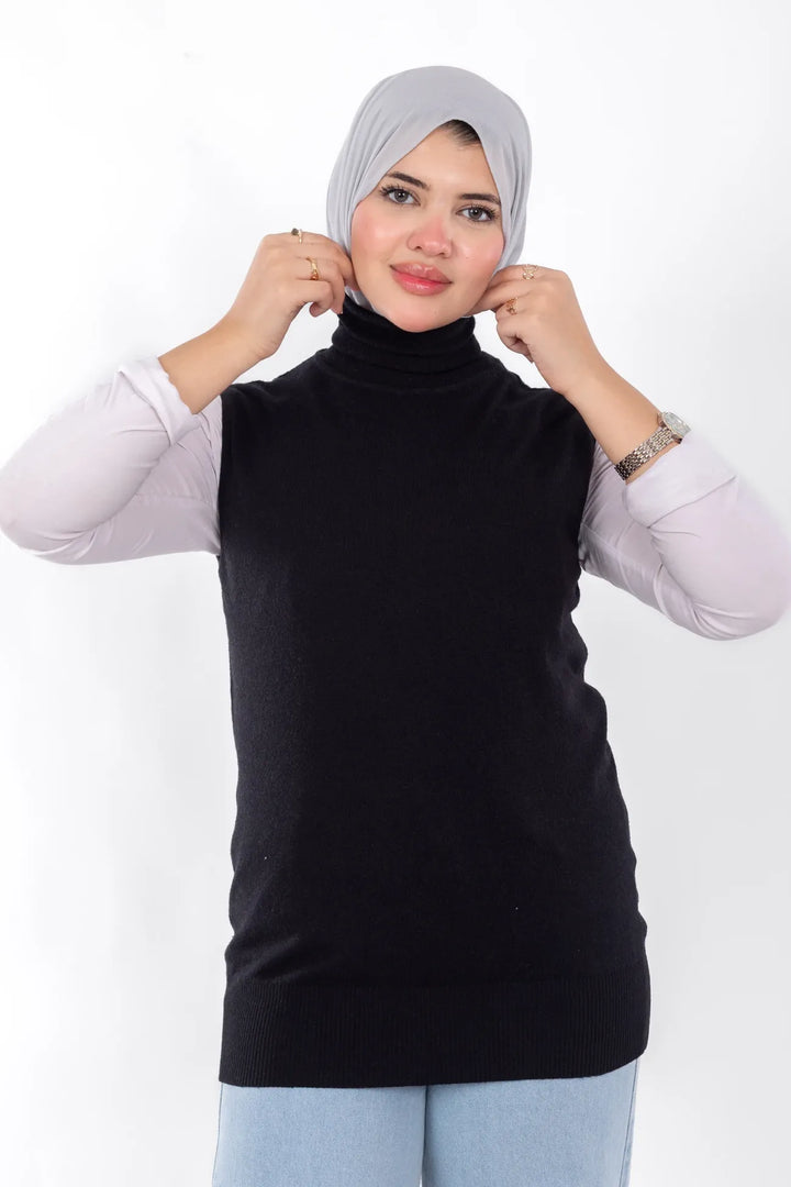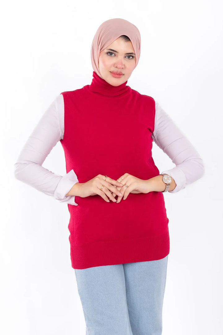 High neck tank top, soft knit, basic style, can be styled in more than one way with clothes