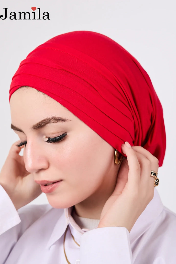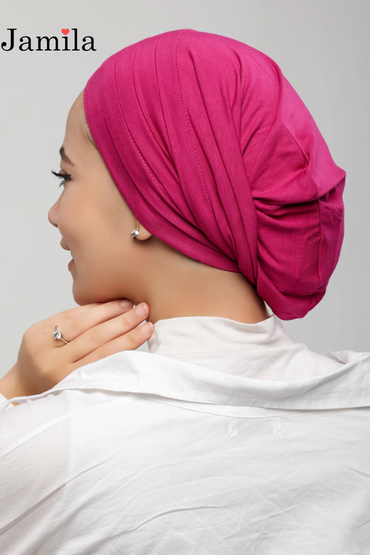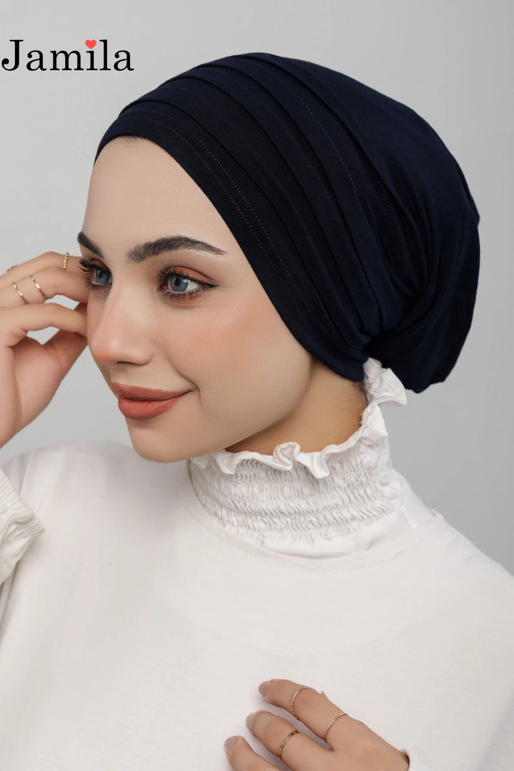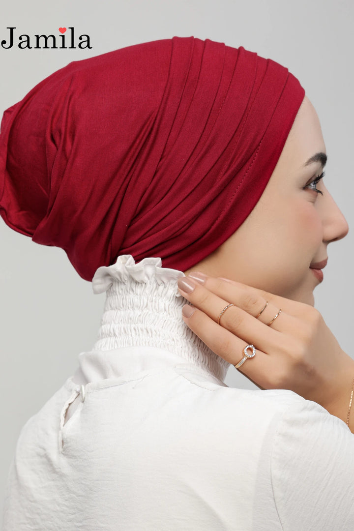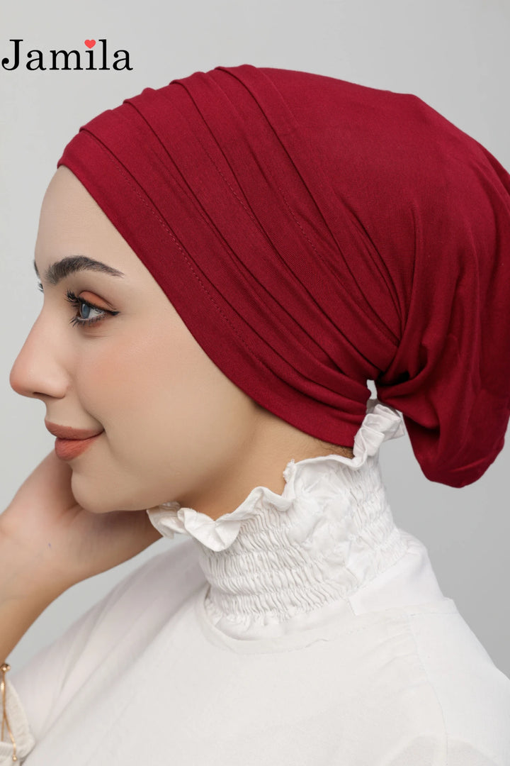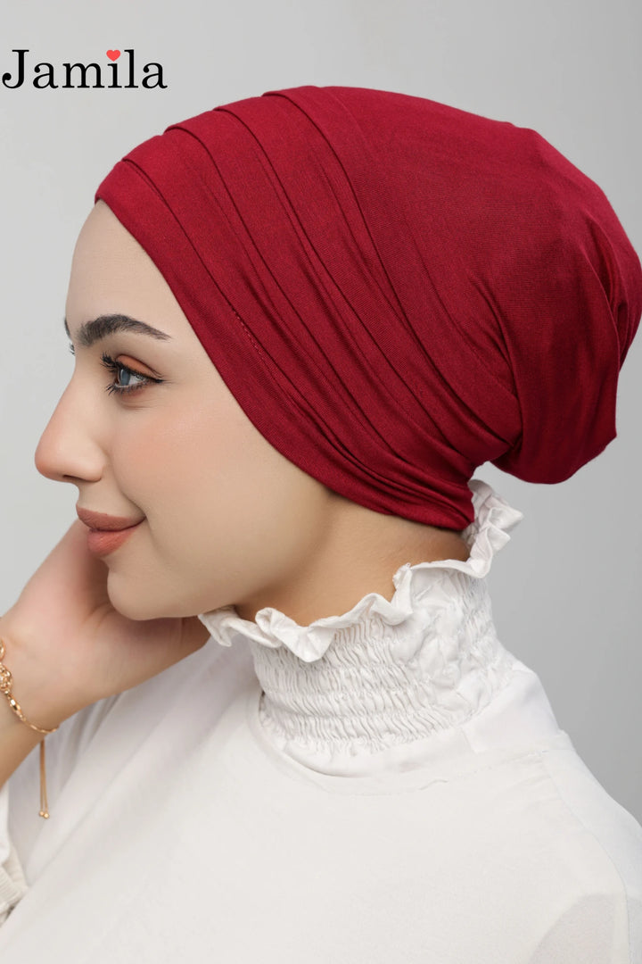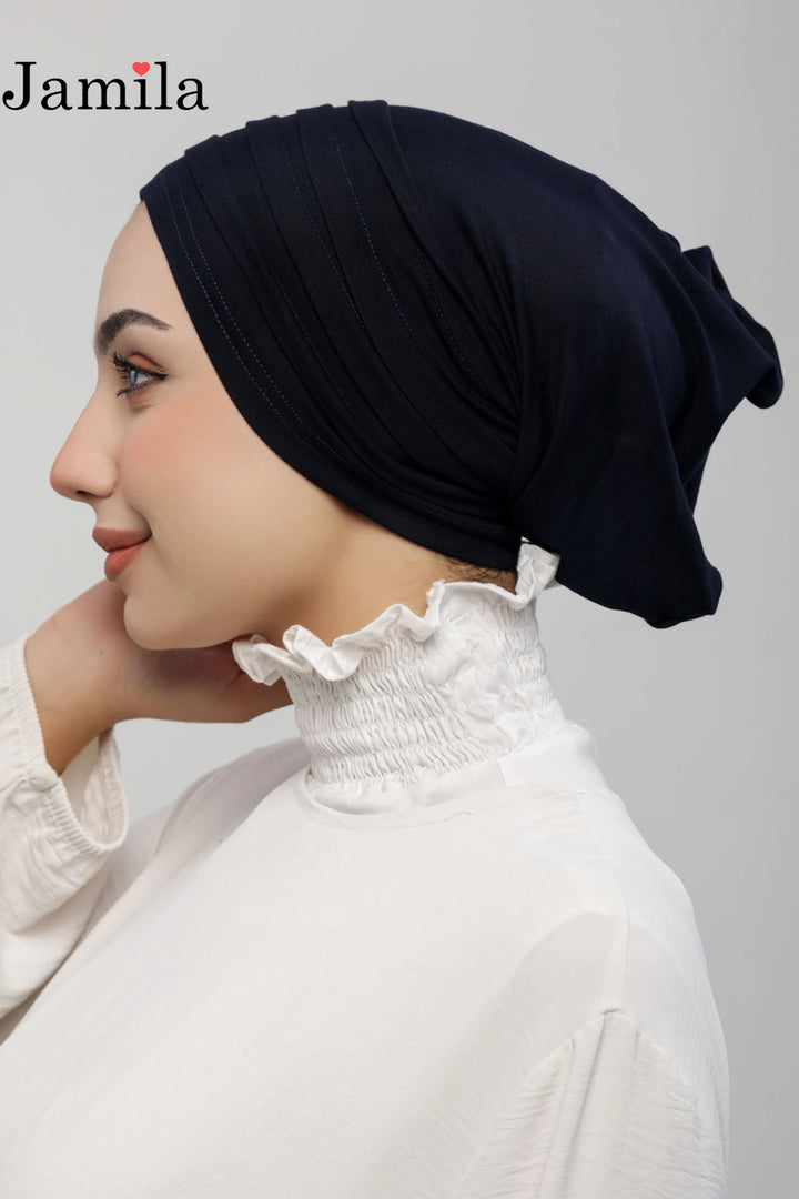 بندانة درابية مقفولة تغطى الرأس كاملة بامكانك التحكم فى مقدمتهاتتميز بتعدد الوانها وخامتها الليكرا الناعمة تساعدك على ارتداء جميع انواع الايشاربات وخصوصاالشيفونات لامكانية ظبطها من الامام. تمتص العرق وتحافظ على شعرك من التعرق.