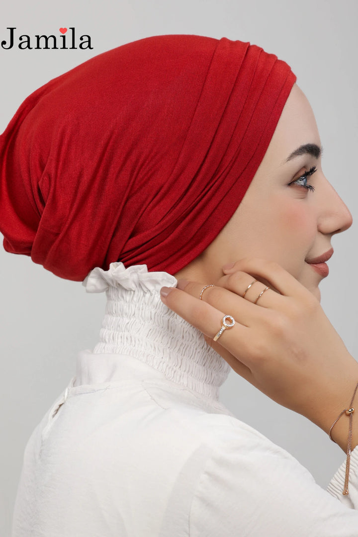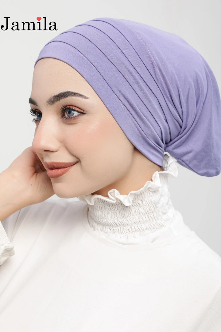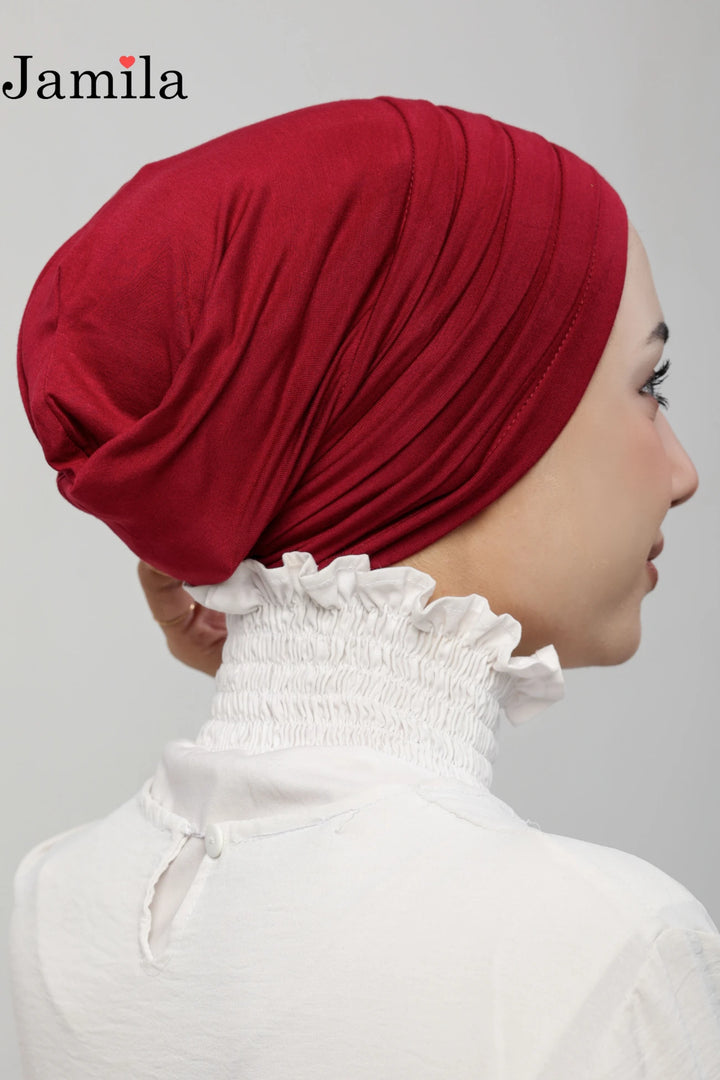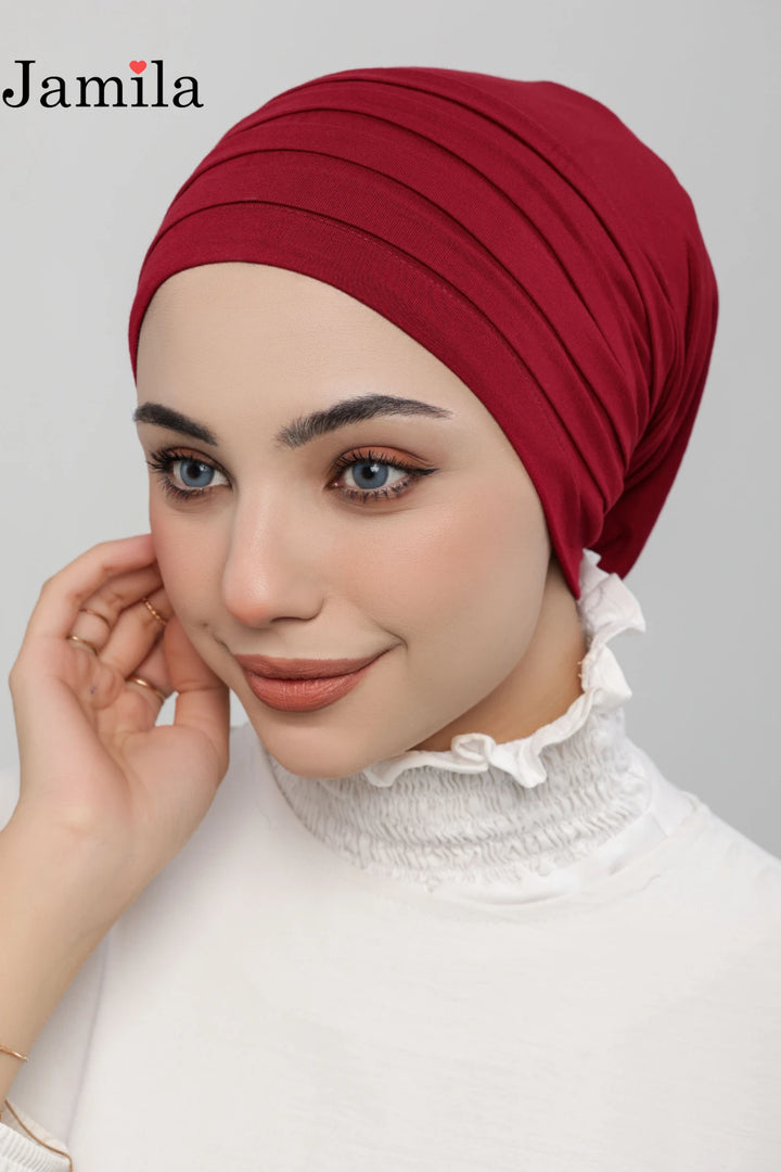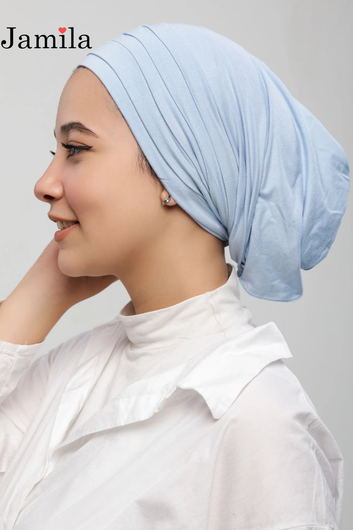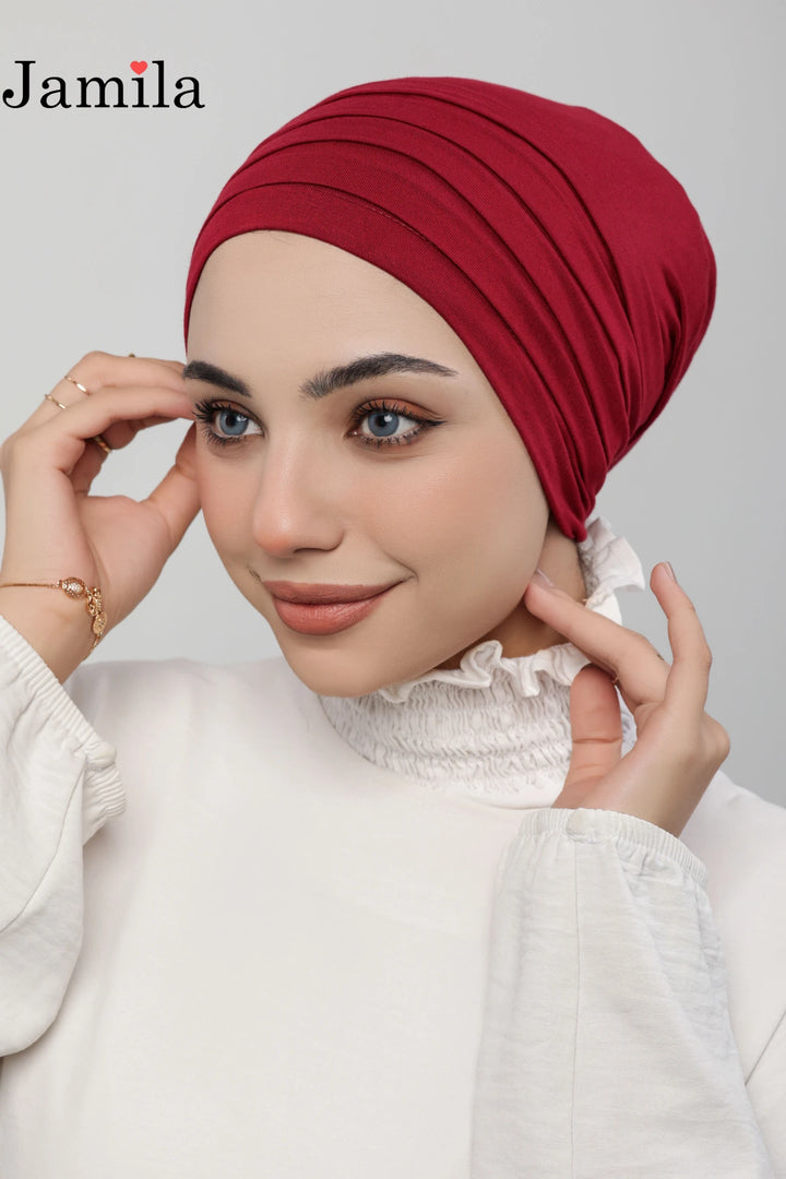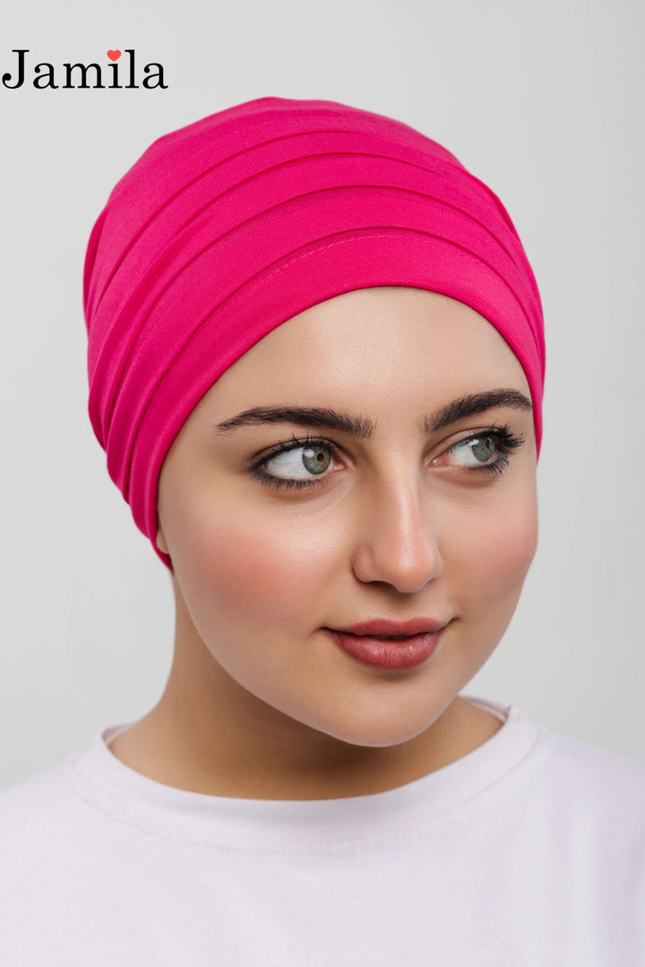 بندانة درابية مقفولة تغطى الرأس كاملة بامكانك التحكم فى مقدمتهاتتميز بتعدد الوانها وخامتها الليكرا الناعمة تساعدك على ارتداء جميع انواع الايشاربات وخصوصاالشيفونات لامكانية ظبطها من الامام. تمتص العرق وتحافظ على شعرك من التعرق.