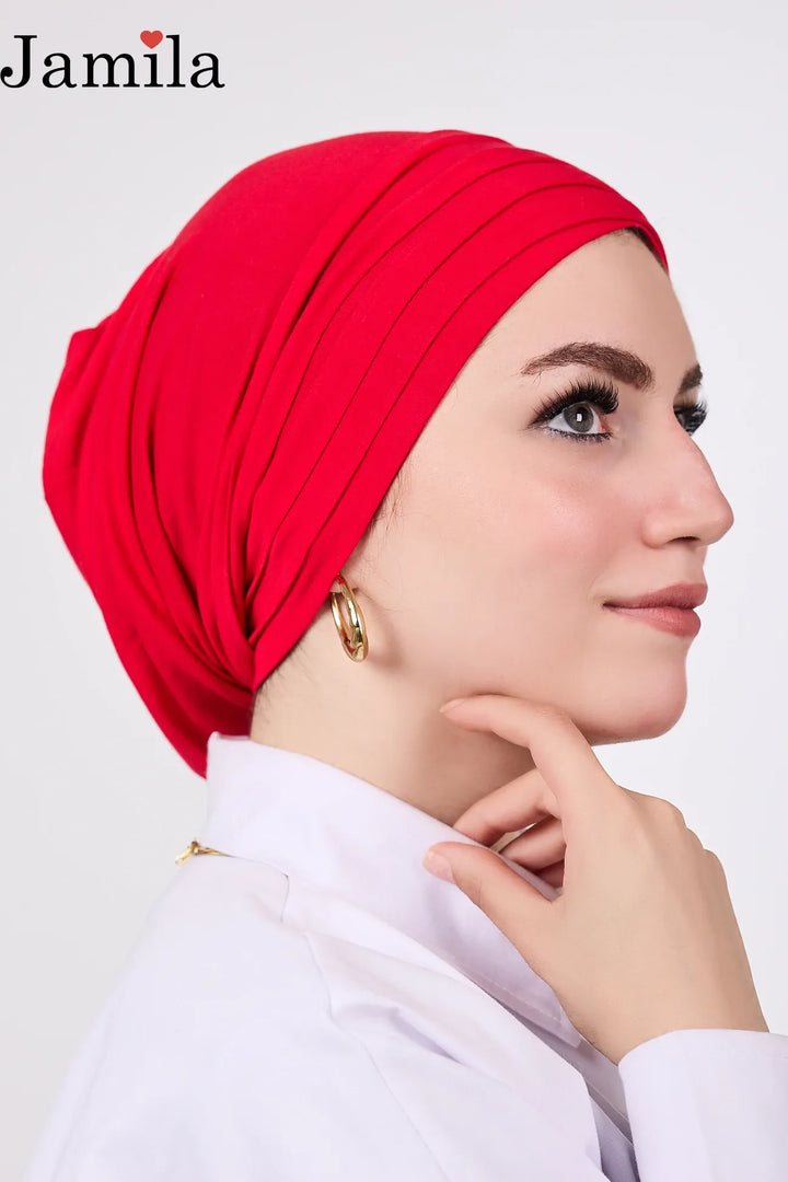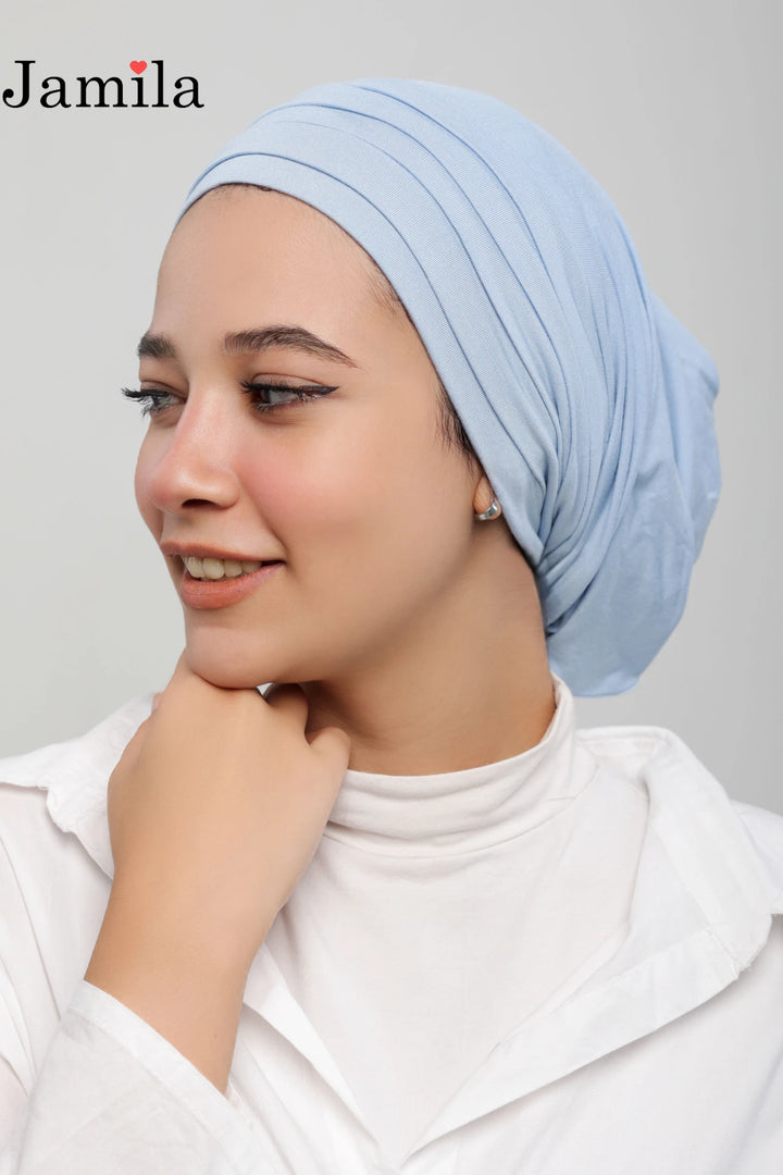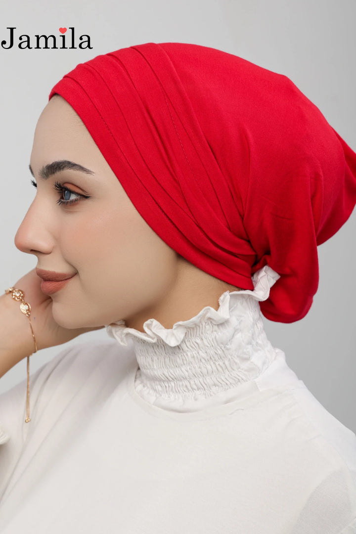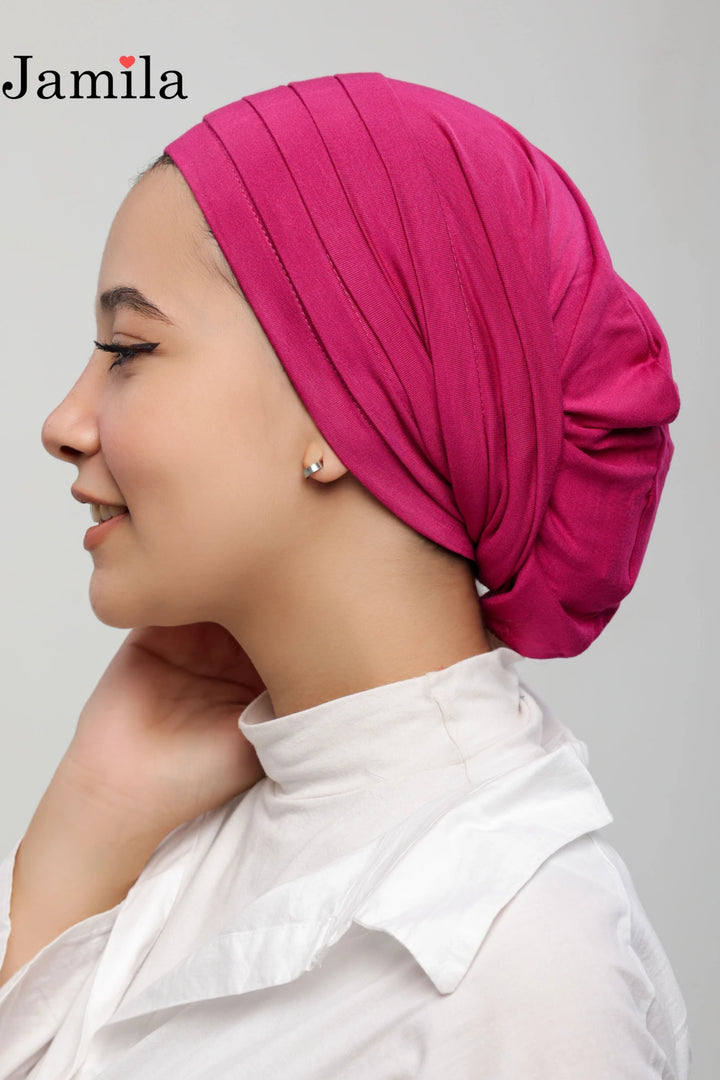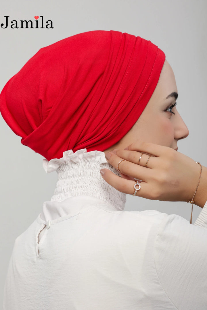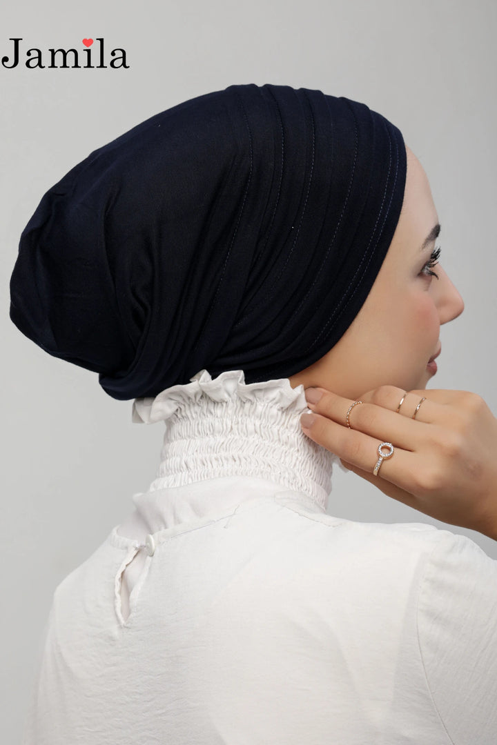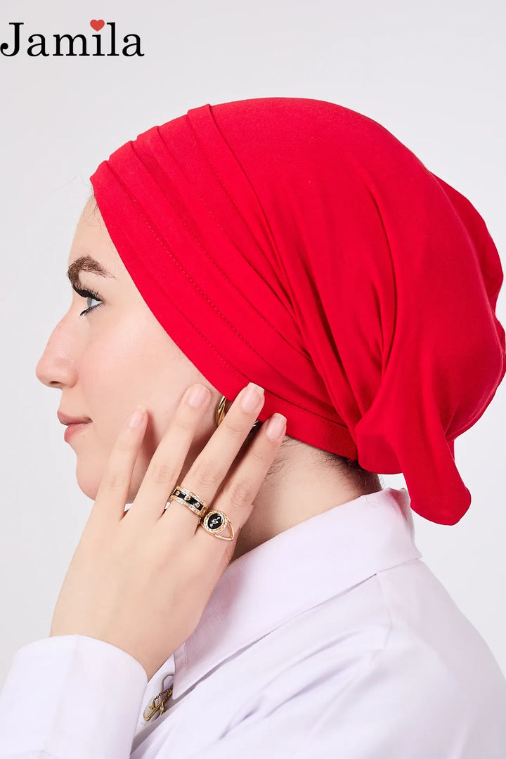 بندانة درابية مقفولة تغطى الرأس كاملة بامكانك التحكم فى مقدمتهاتتميز بتعدد الوانها وخامتها الليكرا الناعمة تساعدك على ارتداء جميع انواع الايشاربات وخصوصاالشيفونات لامكانية ظبطها من الامام. تمتص العرق وتحافظ على شعرك من التعرق.