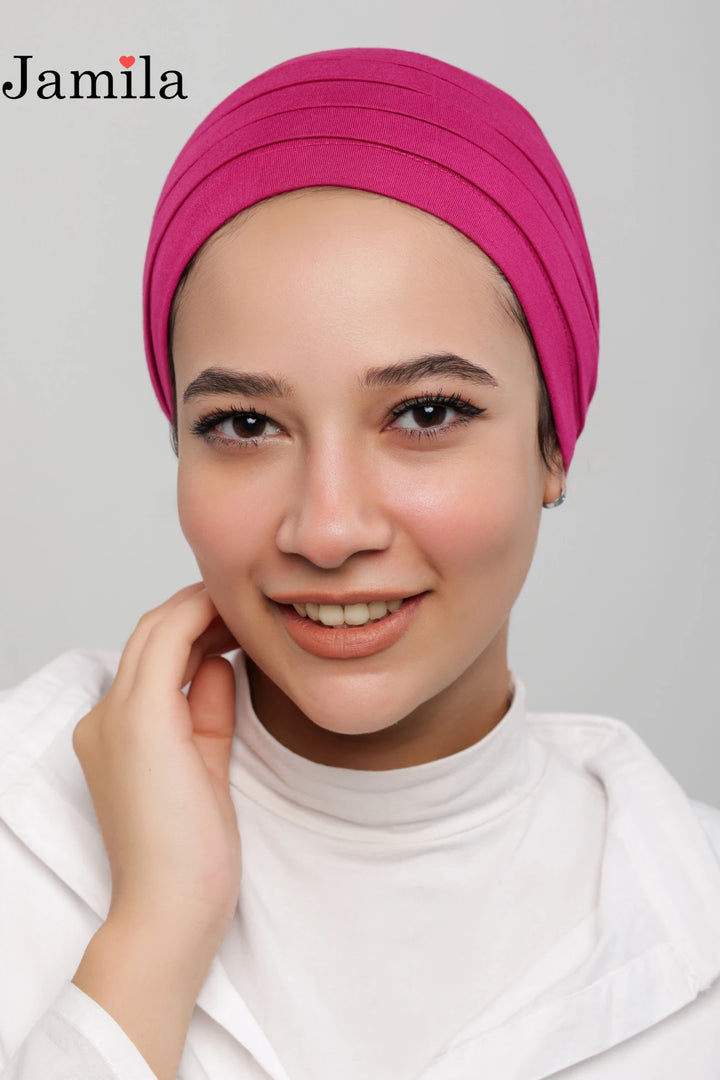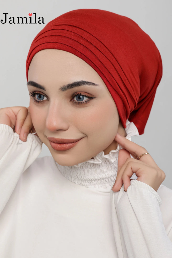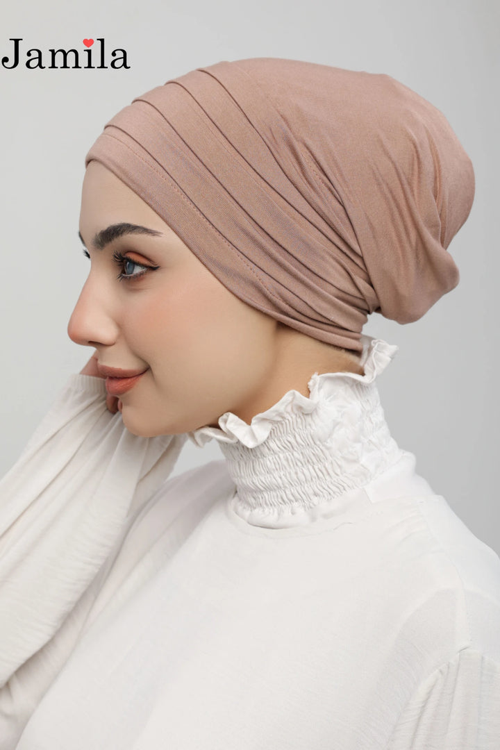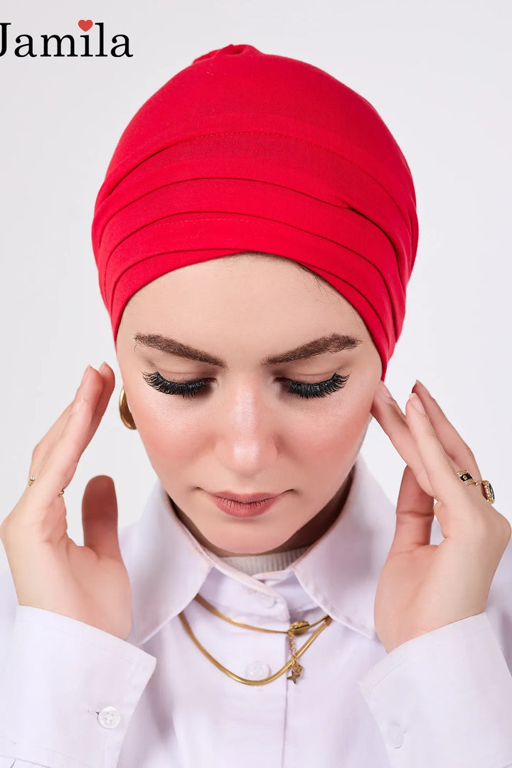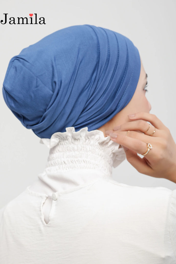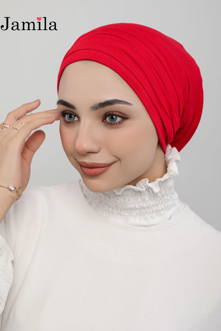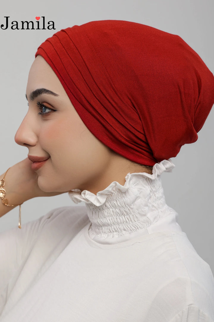 بندانة درابية مقفولة تغطى الرأس كاملة بامكانك التحكم فى مقدمتهاتتميز بتعدد الوانها وخامتها الليكرا الناعمة تساعدك على ارتداء جميع انواع الايشاربات وخصوصاالشيفونات لامكانية ظبطها من الامام. تمتص العرق وتحافظ على شعرك من التعرق.