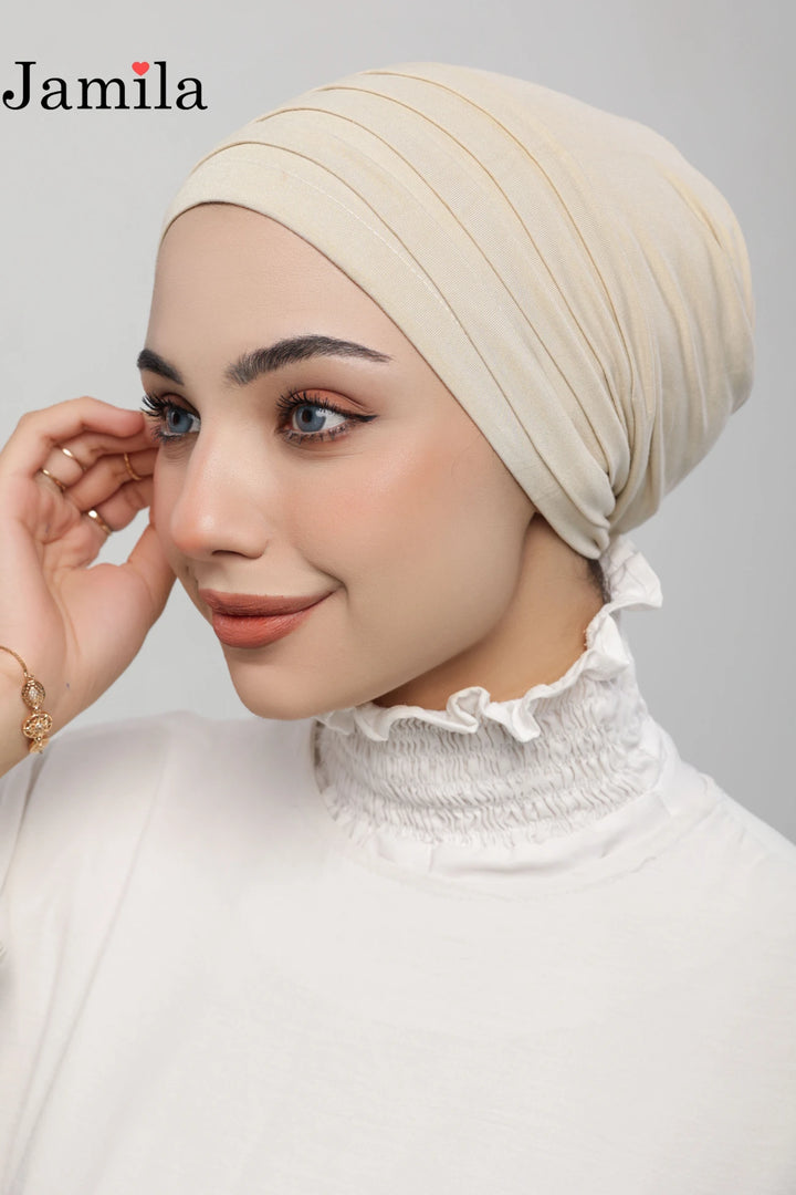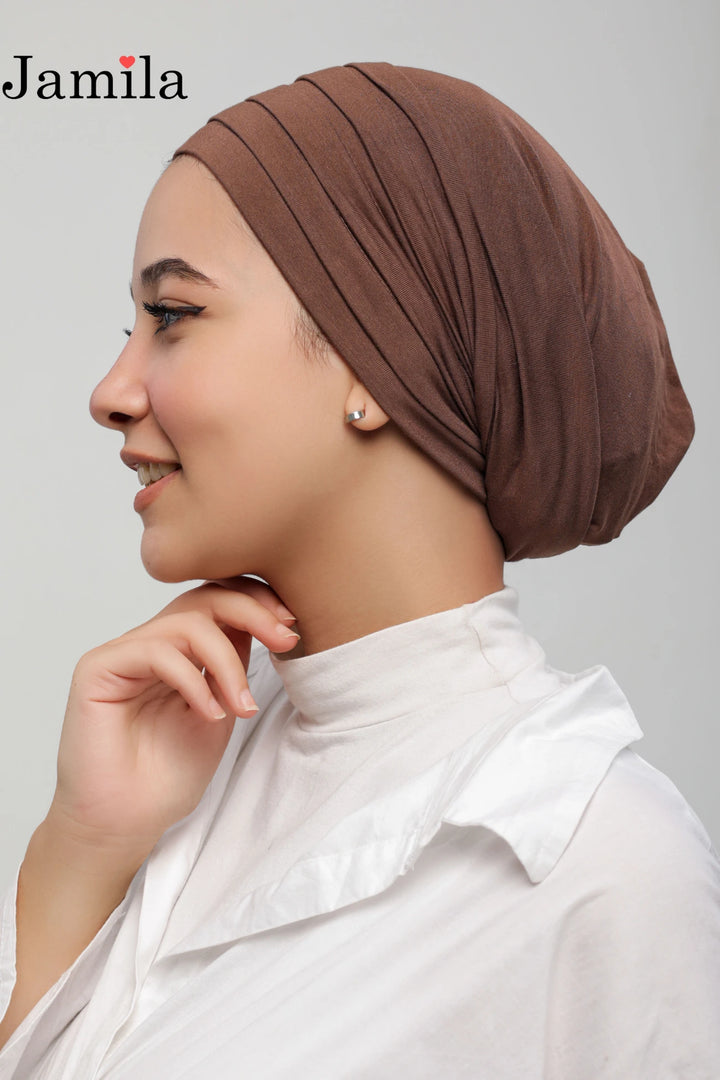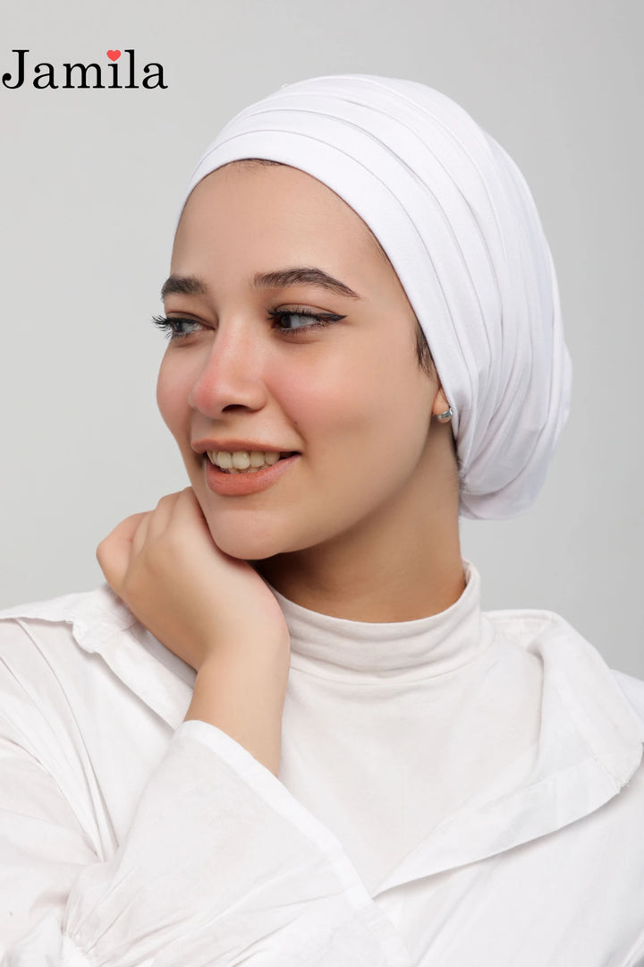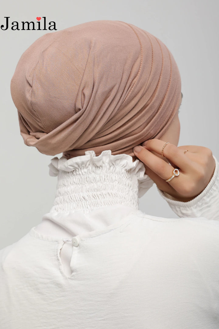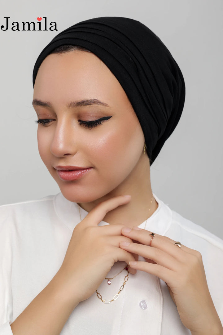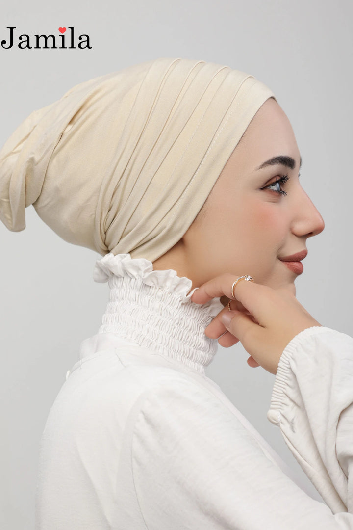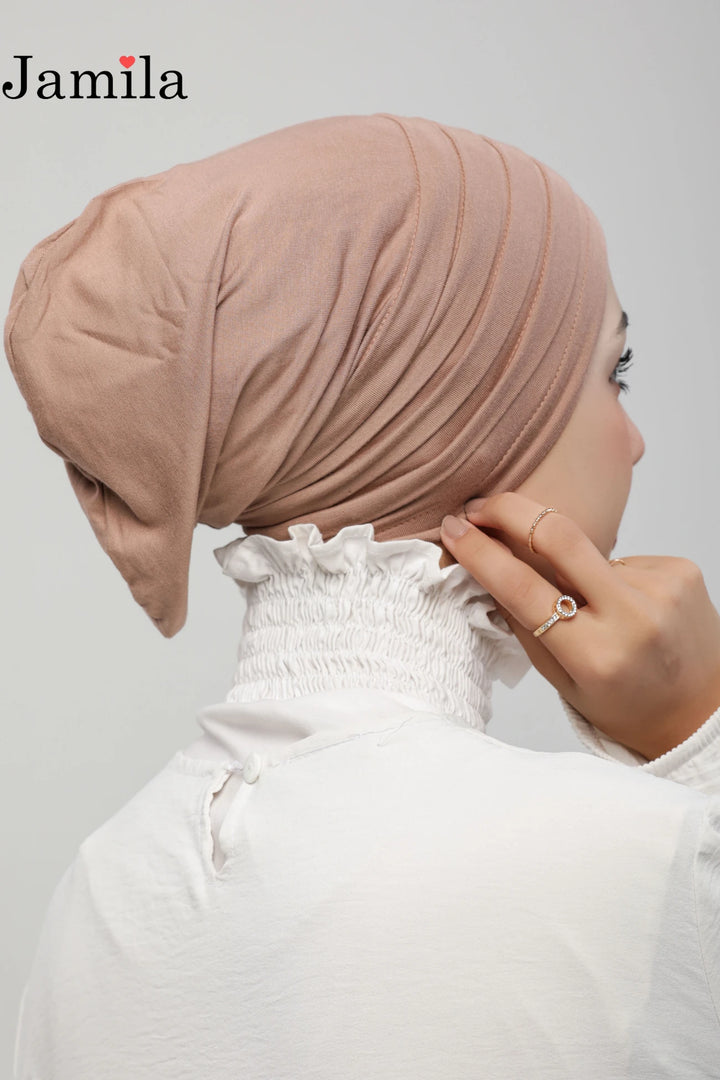 بندانة درابية مقفولة تغطى الرأس كاملة بامكانك التحكم فى مقدمتهاتتميز بتعدد الوانها وخامتها الليكرا الناعمة تساعدك على ارتداء جميع انواع الايشاربات وخصوصاالشيفونات لامكانية ظبطها من الامام. تمتص العرق وتحافظ على شعرك من التعرق.