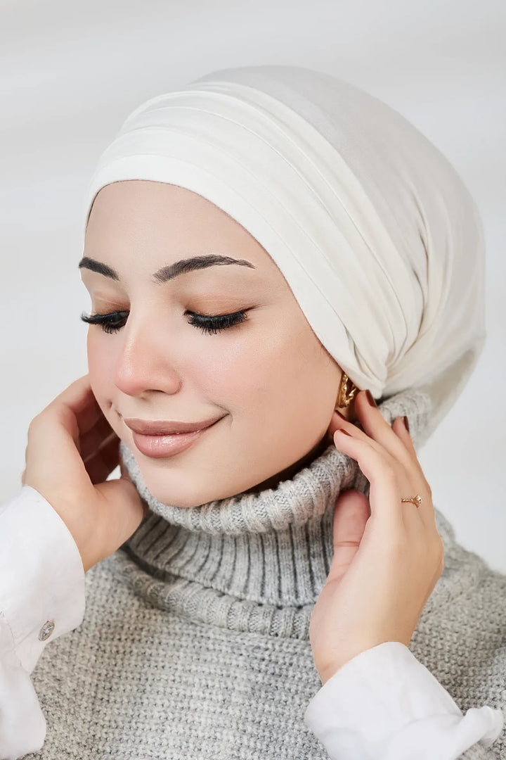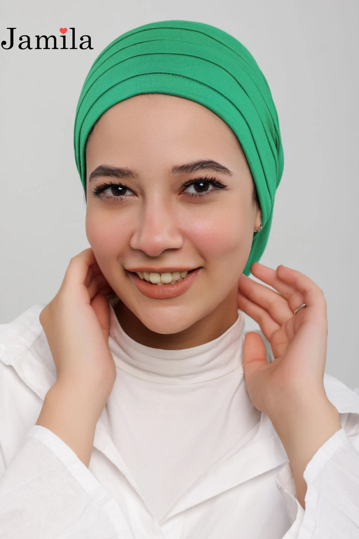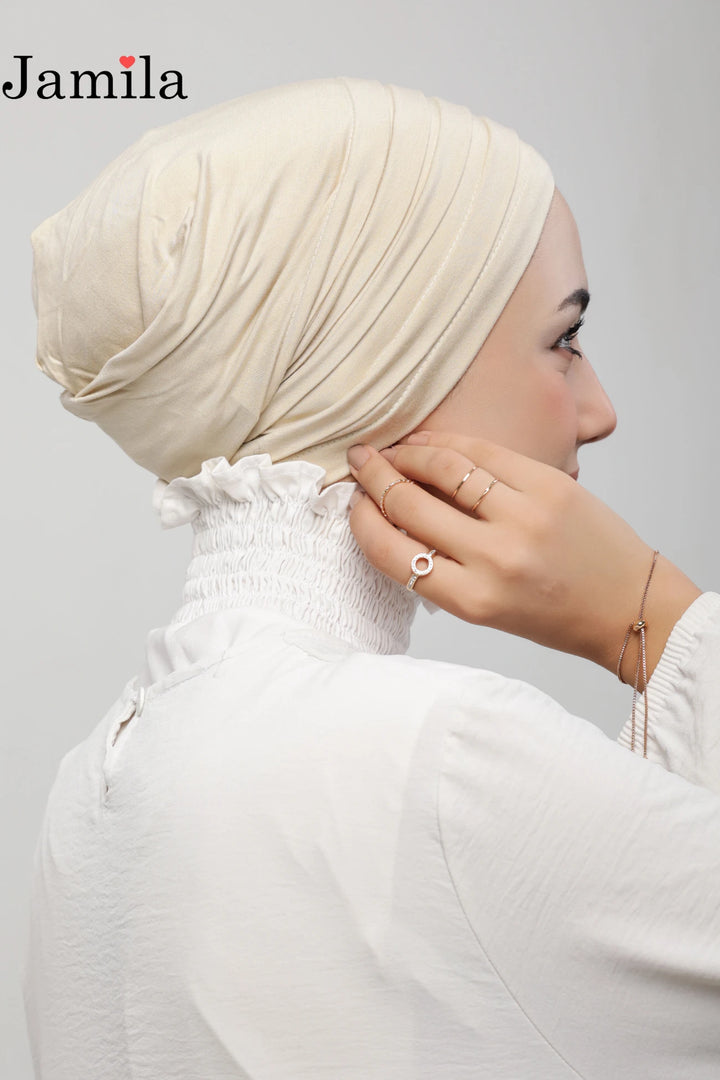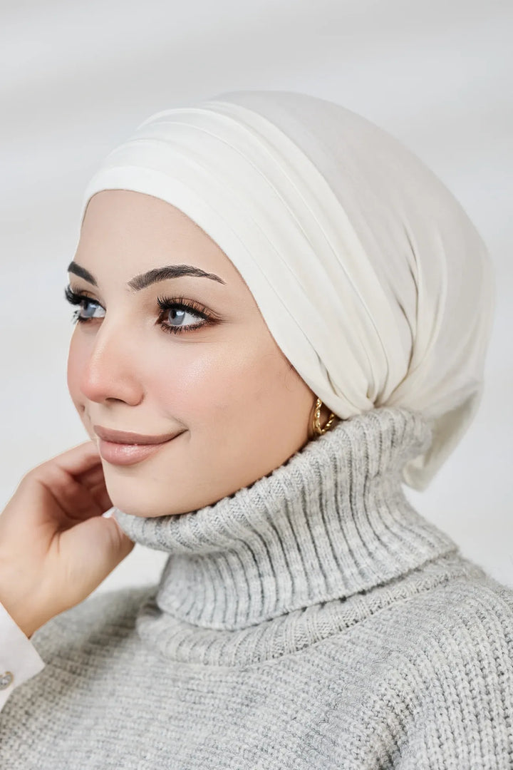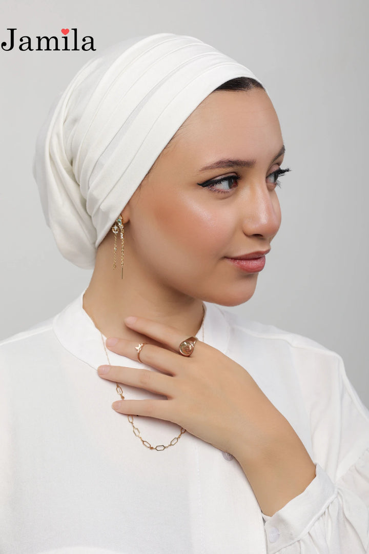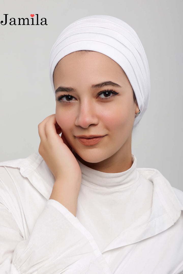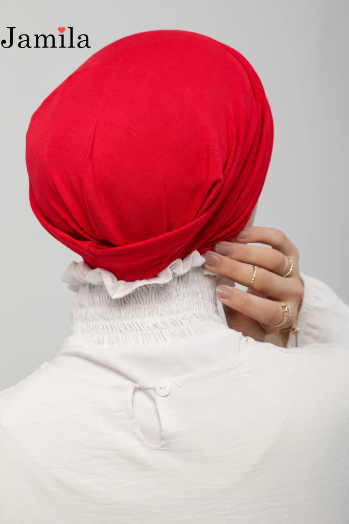 بندانة درابية مقفولة تغطى الرأس كاملة بامكانك التحكم فى مقدمتهاتتميز بتعدد الوانها وخامتها الليكرا الناعمة تساعدك على ارتداء جميع انواع الايشاربات وخصوصاالشيفونات لامكانية ظبطها من الامام. تمتص العرق وتحافظ على شعرك من التعرق.
