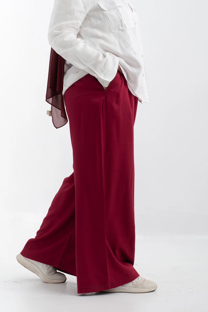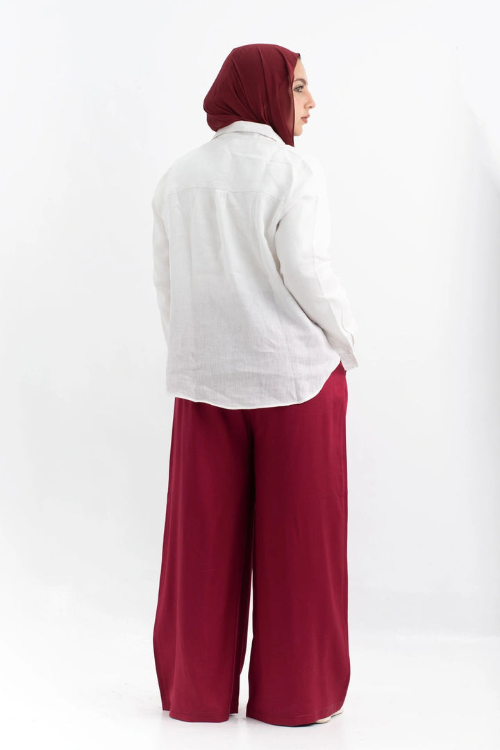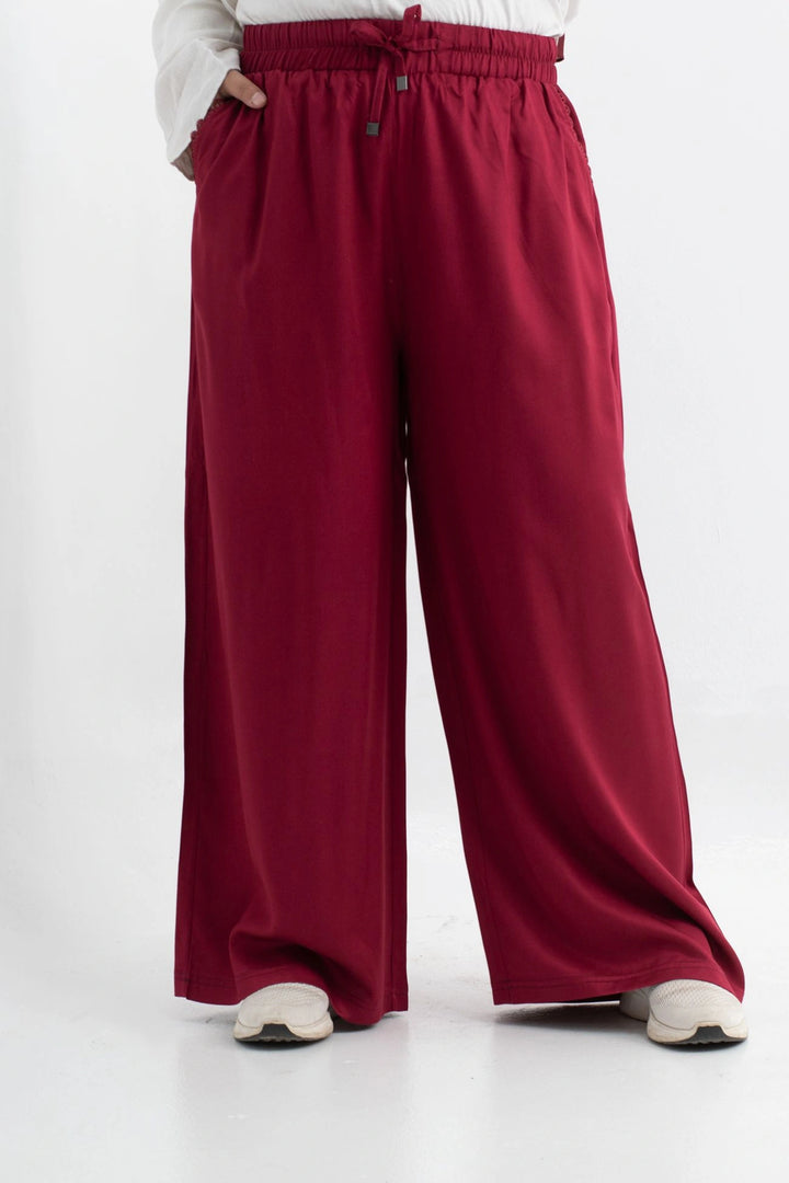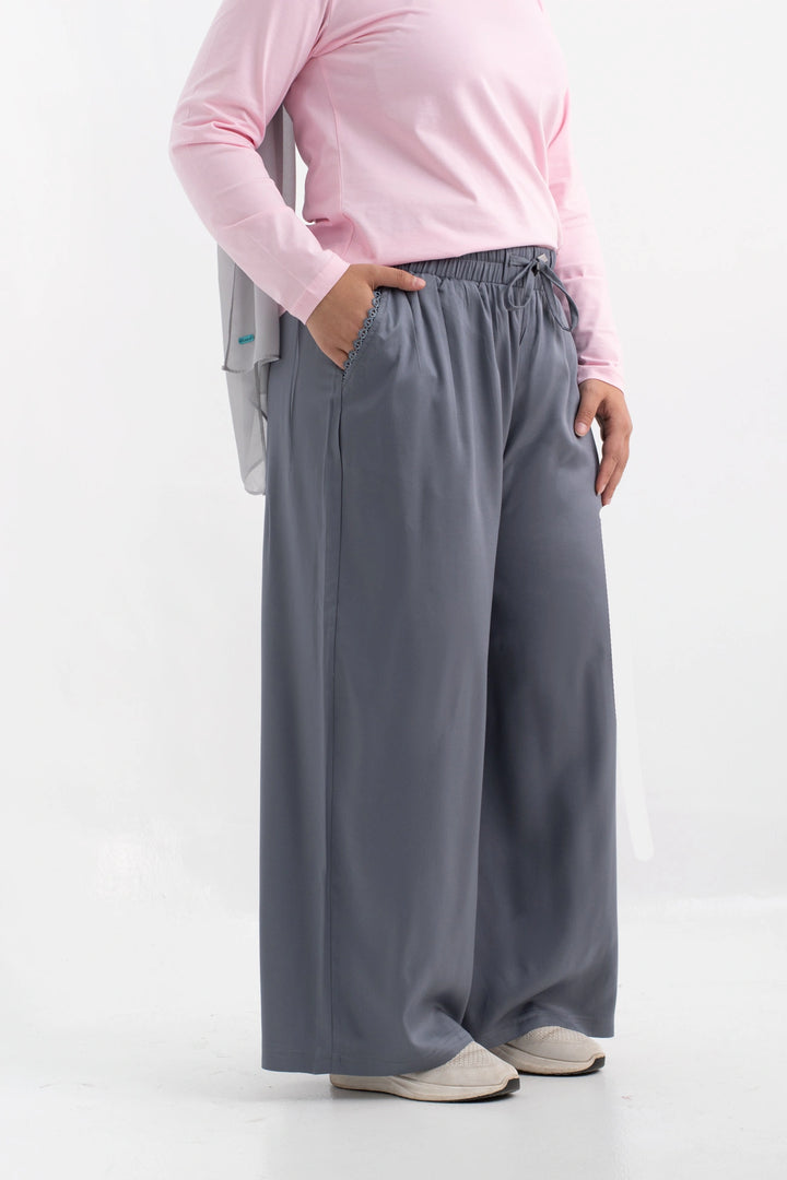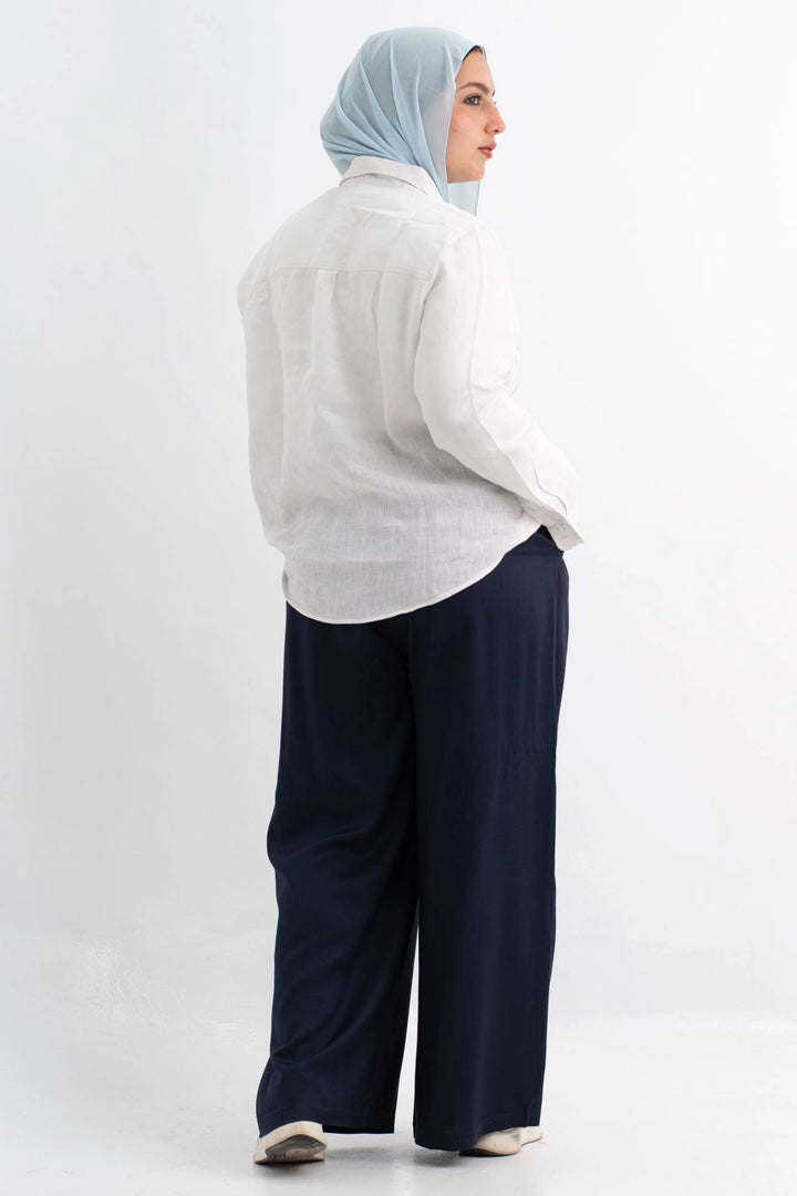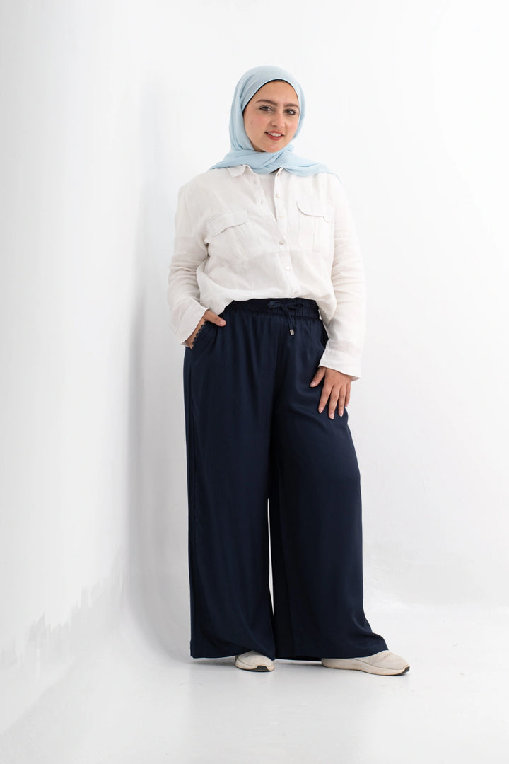 بنطلون وايد ليج به جايبين عليهم شريط من الجوبير والوسط استيك خامته ناعمه انسيابيه مناسبه للصيف