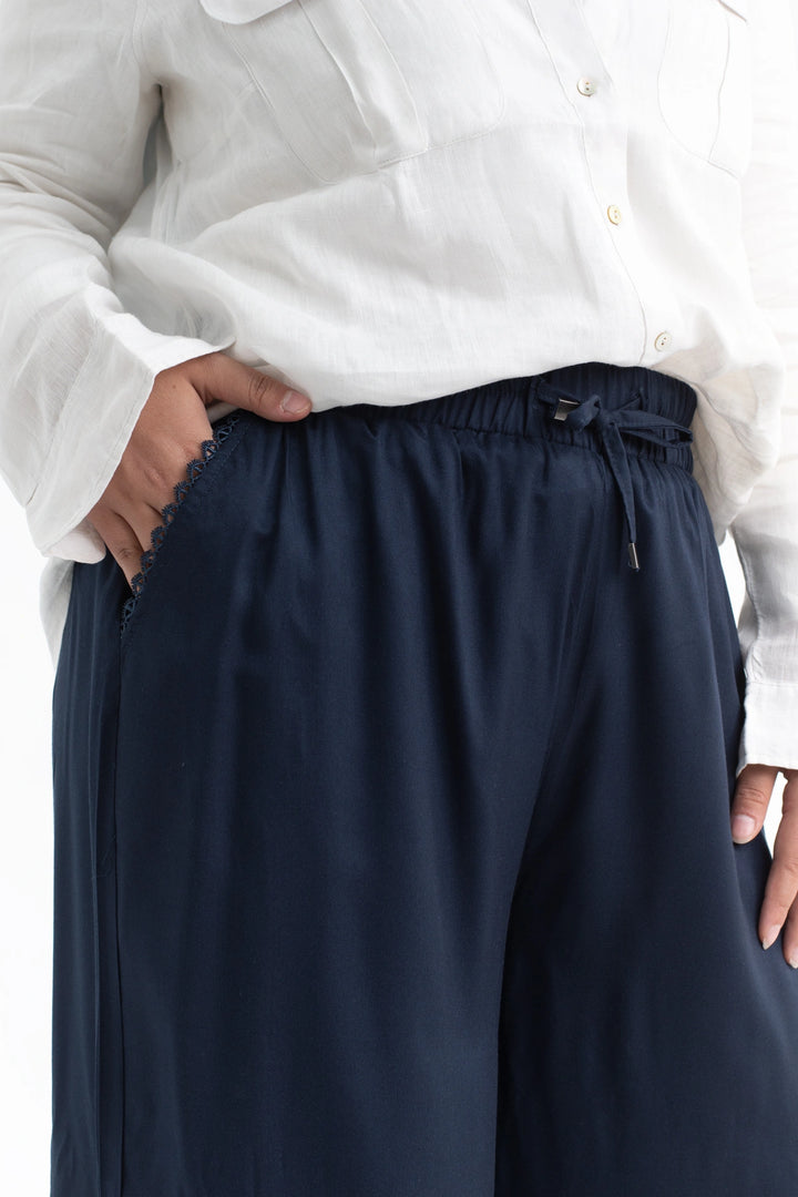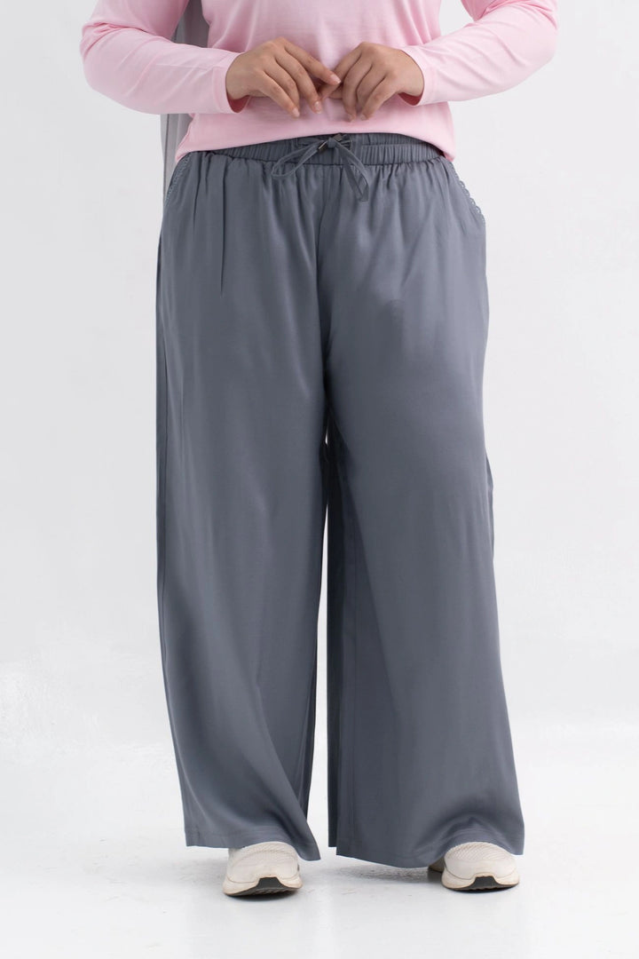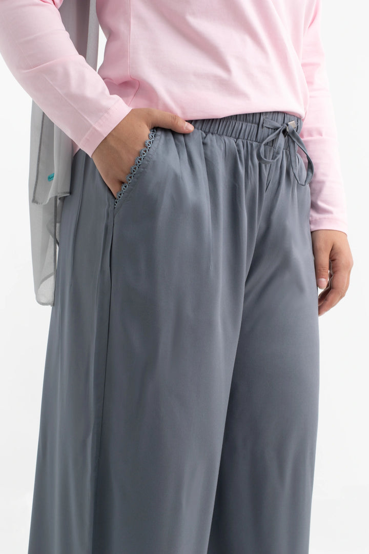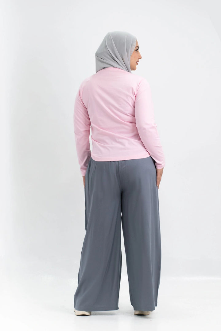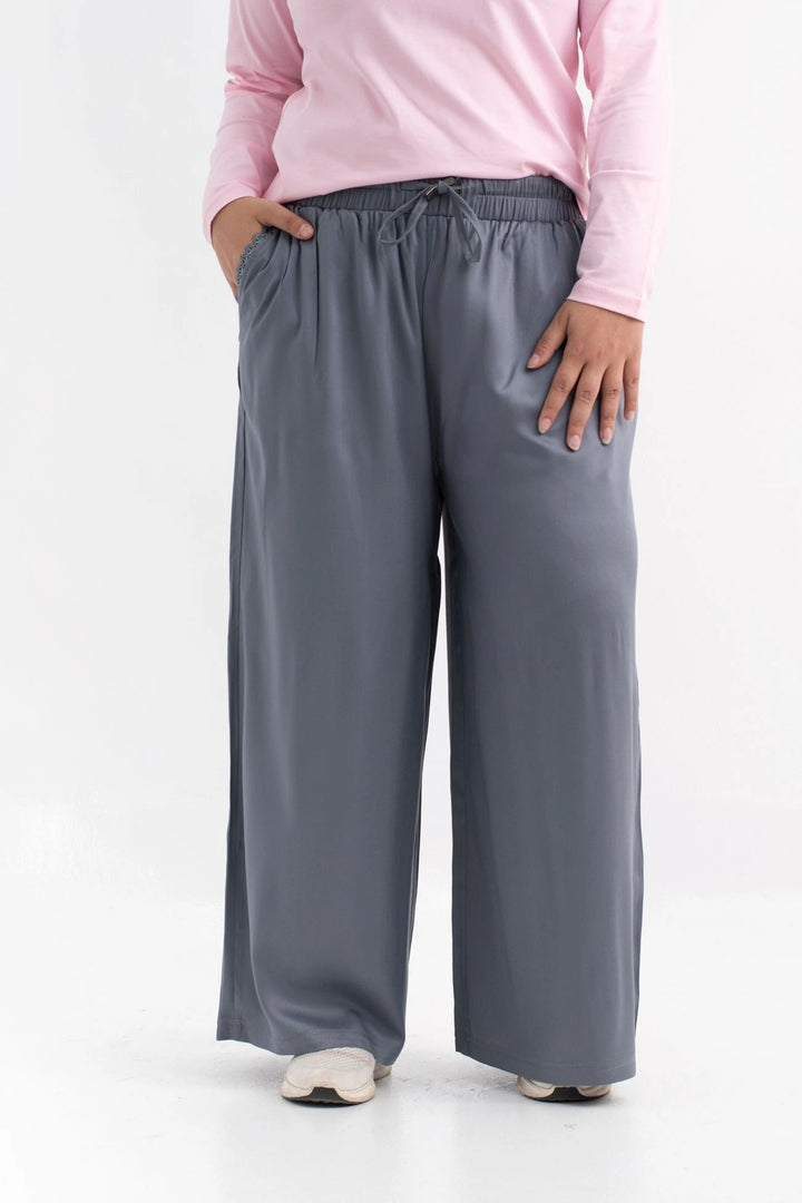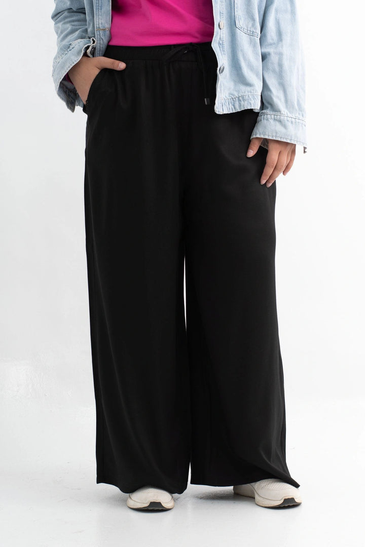 بنطلون وايد ليج به جايبين عليهم شريط من الجوبير والوسط استيك خامته ناعمه انسيابيه مناسبه للصيف