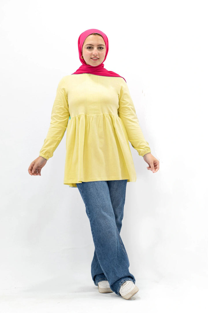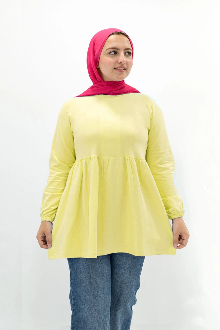 تي شيرت 100%قطن قاصه واسعه مناسب للصيف بكم طويل في نهايته استيك