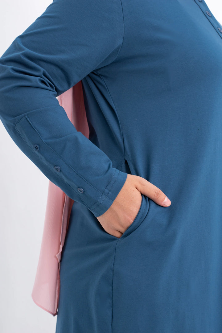 تي شيرت 100% قطن برقبه دائريه وزراير وفي جايبين علي الجوانب وفي نهايه الكم زراير لإضفاء لمسه جماليه