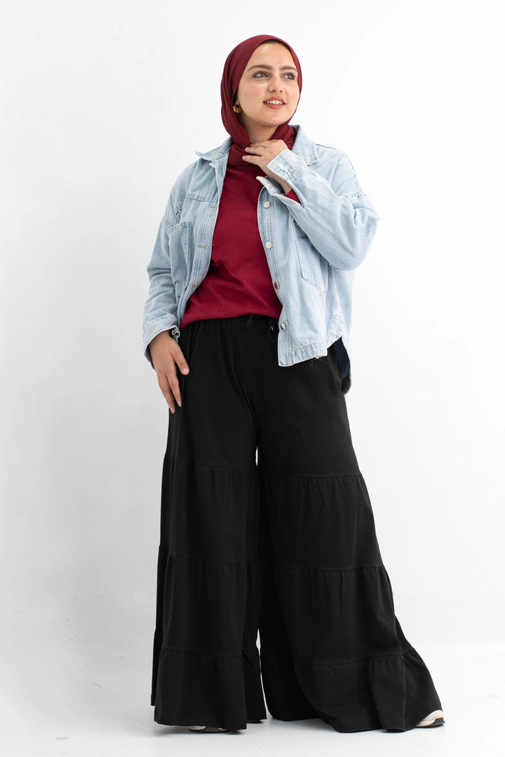 جيب بنطلون قطن 100% موديل طبقات واسع به استيك علي الوسط للراحه في اللبس