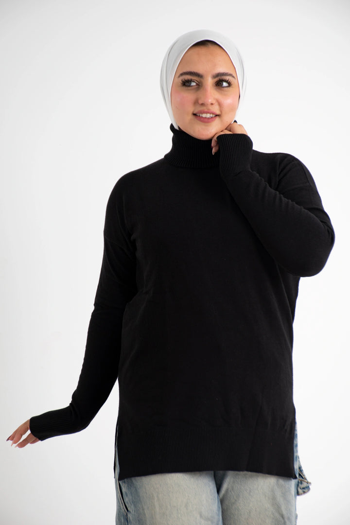 هاي كول طويل من التريكو الصوف الناعم كاجوال متعدد الاستخدامات كتف ساقط وبه فاتحين من الجانب لإعطاء وسع مناسب في اللبس